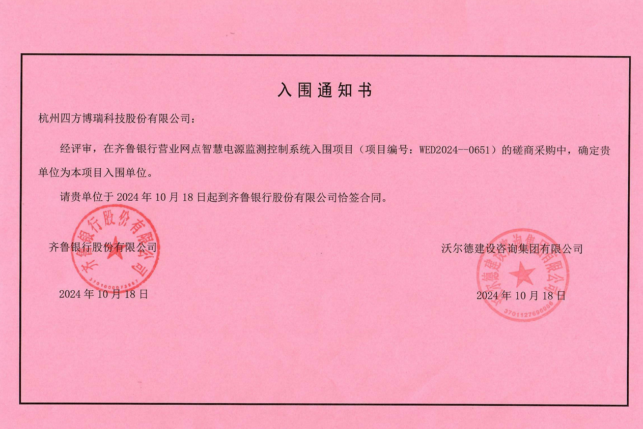 我司入圍齊魯銀行營(yíng)業(yè)網(wǎng)點(diǎn)智慧電源監(jiān)測(cè)控制系統(tǒng)項(xiàng)目