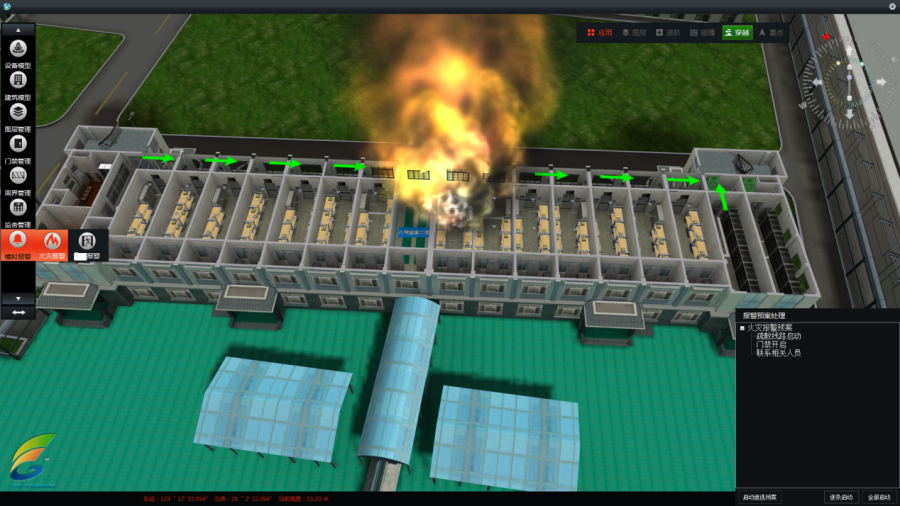 以VR(虛擬現(xiàn)實)、3DGIS(三維地理信息系統(tǒng))、RFID、物聯(lián)網(wǎng)、OLTP/OLAP等技術為基礎,通過對管轄范圍內建筑、地貌、交通、植被等地理信息和安防硬件設備等物件3D精細建模,實現(xiàn)場景三維立體還原,對地理信息、資產信息、人員信息、重點時段、重點人物、重點區(qū)域、重點事件的可視化管理,實現(xiàn)對突發(fā)事件信息鎖定、智能聯(lián)動、預案部署、應急通訊調度等應急處突的三維立體可視化指揮。